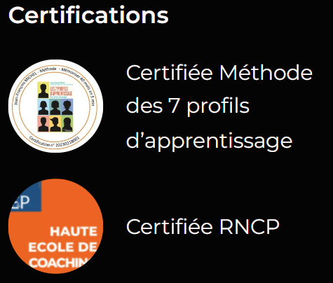 Diplômée de la haute école de coaching, j’appartiens aussi à un collectif de personnes formées à la méthode d’accompagnement des enfants/élèves basée sur les 7 profils d'apprentissage.